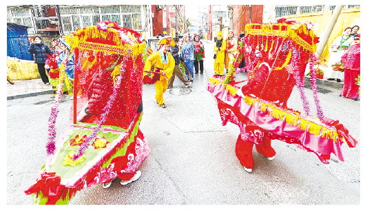 2月24日,奎文区东关街道苇湾社区开展了一场“民俗巡游闹新春”活动,社区居民表演了秧歌、旱船、毛驴等春节民俗节目并进行巡游。元宵节前,我市各县市区纷纷开展丰富多彩的活动,处处洋溢着喜庆的节日气氛。 记者 张驰 摄