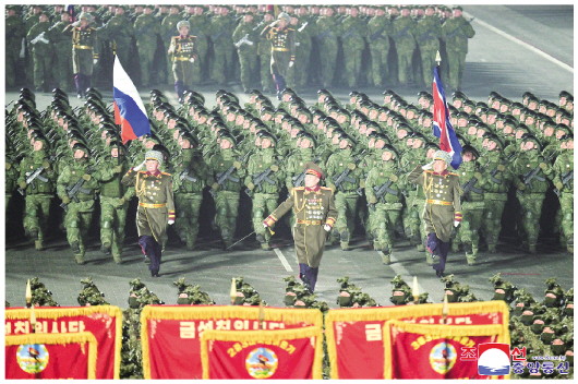 据朝中社2月26日报道,朝鲜25日在平壤金日成广场举行朝鲜劳动党第九次代表大会纪念阅兵式。