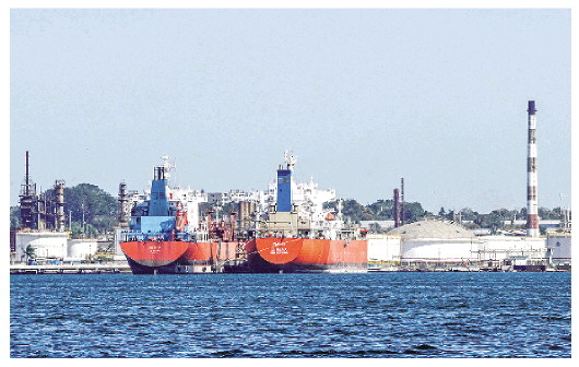 2月25日,船只停靠在古巴哈瓦那湾的一个炼油厂码头。