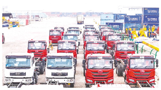 本报讯 (记者 于菲 通讯员 徐晓宇 李凌云)2月27日,在山东港口渤海湾港潍坊港区8号码头,75辆工程车及各类设备整装待发(如图),将搭乘潍坊港区东南亚件杂货航线的班轮驶向柬埔寨。这是潍坊港区首次实现大批量工程车集中出口,也标志着渤海湾港新时代“下南洋”供应链柬埔寨航线正式开通。