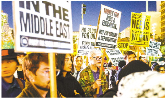 3月2日,美国纽约、旧金山、洛杉矶等主要城市的民众举行游行集会,抗议美国对伊朗发动军事打击。