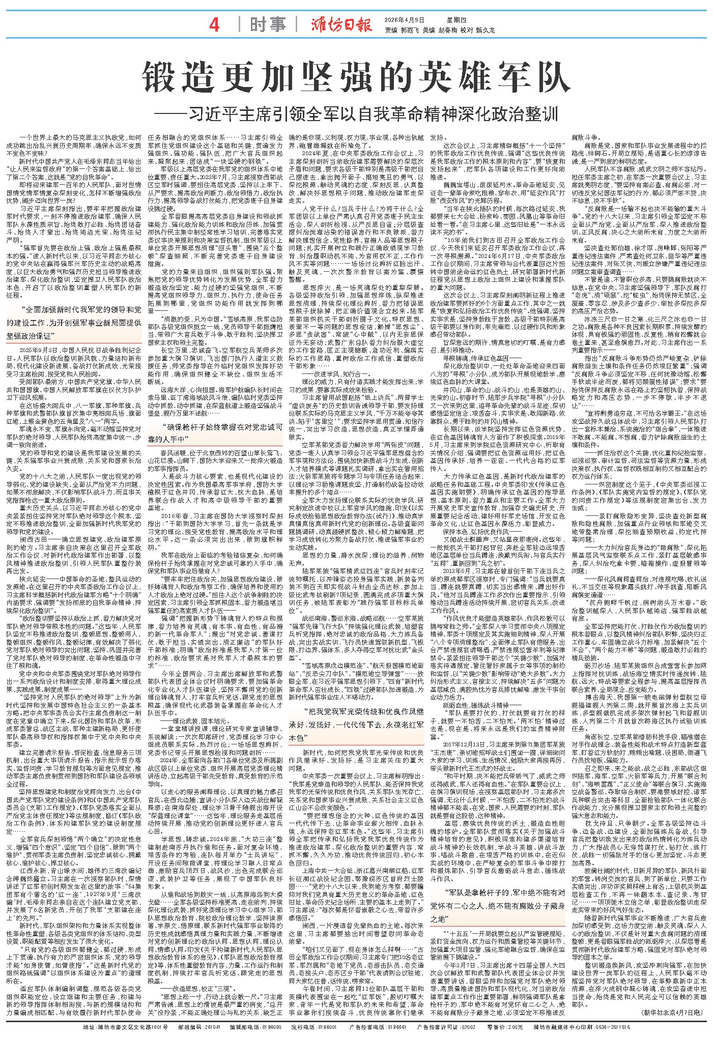 整训锻造焕新风,攻坚冲刺向强军。在加快建设世界一流军队的征程上,人民军队毫不动摇坚持党对军队绝对领导,在革弊鼎新中正本清源,在淬火成钢中凝心铸魂,在攻坚奋进中担当使命,始终是党和人民完全可以信赖的英雄部队。