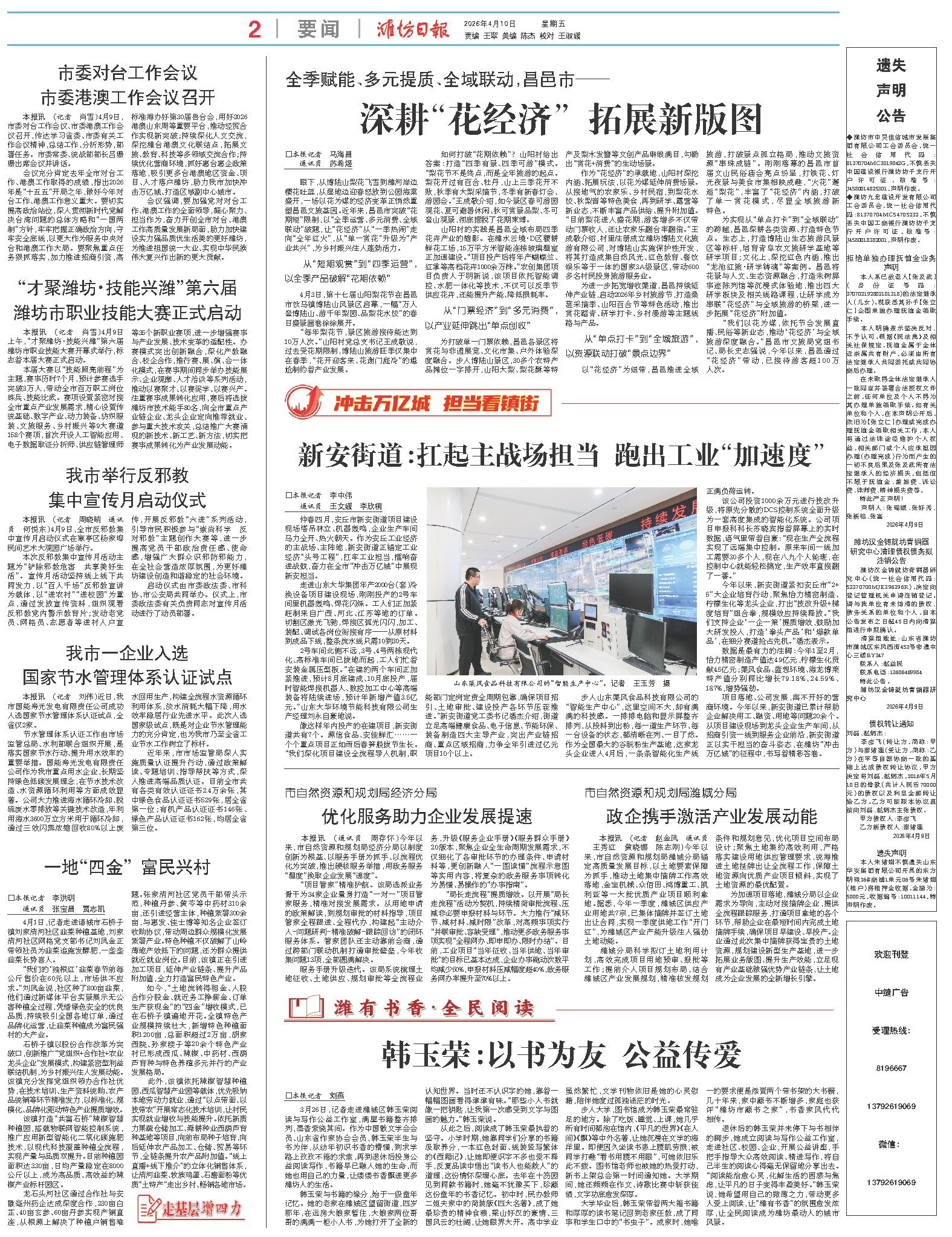 眼下,从博陆山梨花飞雪到潍河岸边樱花吐蕊,从湿地边迎春怒放到公园海棠盛开,一场以花为媒的经济变革正悄然重塑昌邑文旅基因。近年来,昌邑市突破“花期短”限制,以“全季运营、多元消费、全域联动”破题,让“花经济”从“一季热闹”走向“全年红火”,从“单一赏花”升级为“产业共兴”,为乡村振兴注入蓬勃活力。