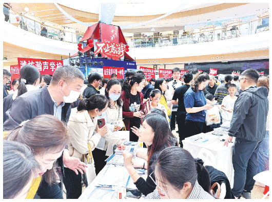 本报讯 (记者 徐艺华)4月18日,由潍坊日报主办的2026年潍坊市中考招生咨询会(吾悦场)在潍坊吾悦广场室内一楼举办。数十所普通高中、综合高中、职业院校及优质培训机构齐聚一堂,各校负责人与招生老师现场坐镇,权威解读招生政策、精准指导志愿填报,以专业服务赢得家长与考生赞誉。