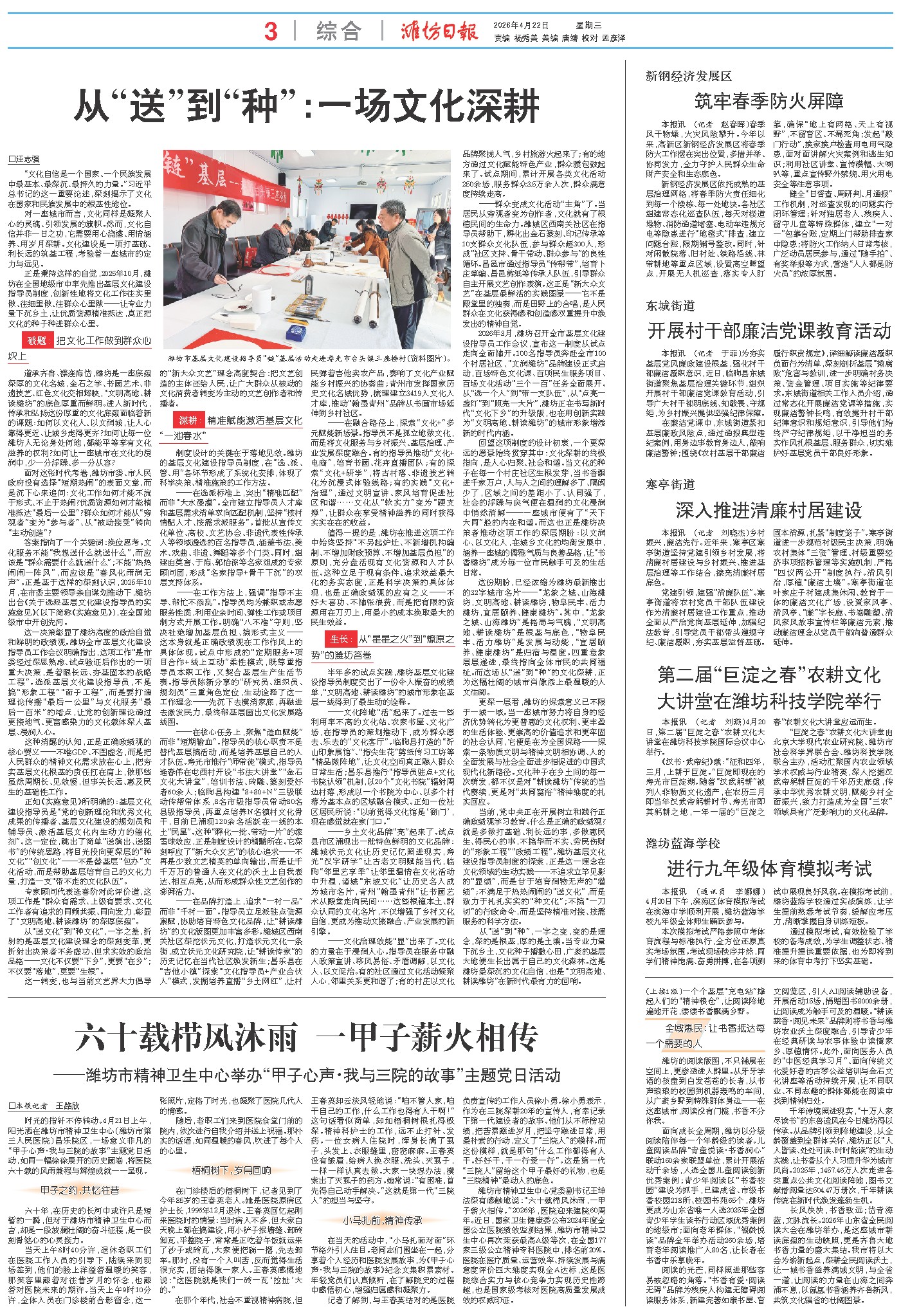 本报讯 (记者 刘燕)4月20日,第二届“巨淀之春”农耕文化大讲堂在潍坊科技学院国际会议中心举行。