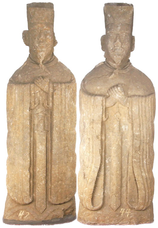 目前我们能见到的关于崔迪的实物资料有四件,收藏于青州博物馆,是当年核桃园村崔迪墓前立于神道两旁的四尊翁仲(石俑)。