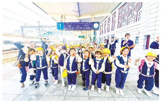 4月24日,潍城区尚德幼儿园中班、大班的孩子们赶赴高铁站研学。孩子们跟着执勤人员认真了解动车知识;乘坐动车时,自觉排队,遵守公共秩序。孩子们在行走中收获知识和快乐,积蓄了成长的力量。 通讯员 方磊 摄